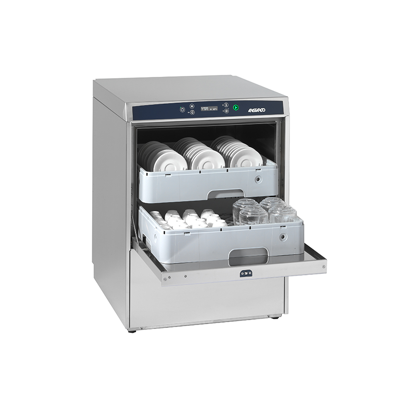 Το πλυντήριο μεταξύ άλλων διαθέτει ηλεκτρονικό πίνακα λειτουργιών, τέσσερα προγράμματα πλύσης (90"-120"-180"-9΄), ανοξείδωτους βραχίονες πλύσης και απόπλυσης, κατασκευή από υψηλής ποιότητας ανοξείδωτο AISI304, αντλίες στεγνωτικού και απορρυπαντικού, ειδικό πρόγραμμα αυτο-καθαρισμού του κάδου στο τέλος της ημέρας, διπλά τοιχώματα, σύστημα PRS και SD. Μπορεί να πλύνει ποτήρια max ύψους 340mm, πιάτα με max ø365mm και σκεύη GN1/1.Προαιρετικά συνοδεύεται με ειδικό kit για ταυτόχρονο πλύσιμο δύο καλαθιών(ιδανικό για καφετέριες).