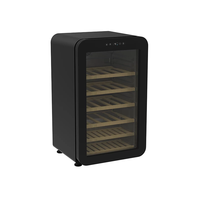 Επαγγελματική βιτρίνα κρασιών, VW110E, χωρητικότητας 95lt και εξωτερικών διαστάσεων 495x450x825mm. Η βιτρίνα έχει εύρος θερμοκρασίας +6οC έως +18οC, διαθέτει μία περιστροφική πόρτα "frameless" και Led φωτισμό. Χρωματισμός εσωτερικά και εξωτερικά μαύρος.
