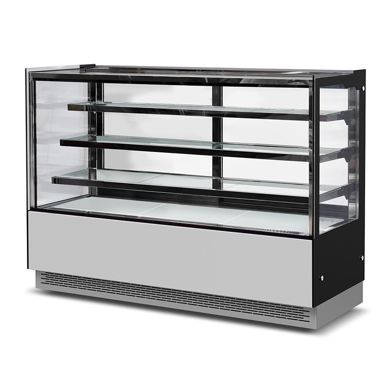 Επαγγελματική θερμαινόμενη βιτρίνα CΒS12003SL με ανοξείδωτο σώμα και μαύρα στοιχεία, καθώς και ίσια κάθετα τζάμια.